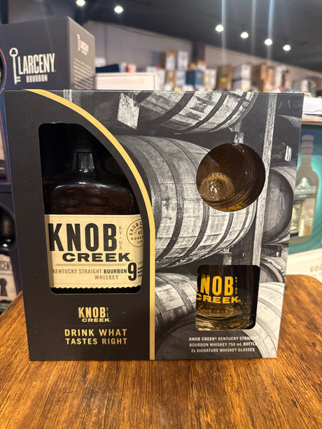 Knob Creek Kentucky Straight Bourbon Aged 9 Years 100 Proof with 2 signature glasses Gift set